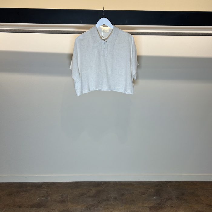 Polo sabbia a maniche corte con colletto classico e bottoni sulla parte frontale lunghezza fino alla vita fit over vestibilità regolare veste fino ad una L