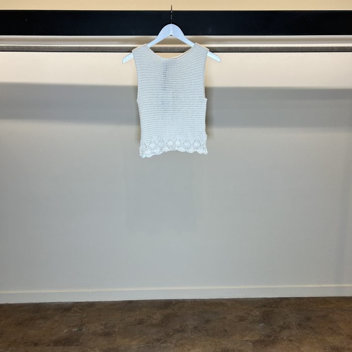 Top burro in macramè senza maniche semitrasparente presenta un dettaglio sulla parte finale del top vestibilità regolare e dritta veste fino ad una L la lunghezza arriva alla vita